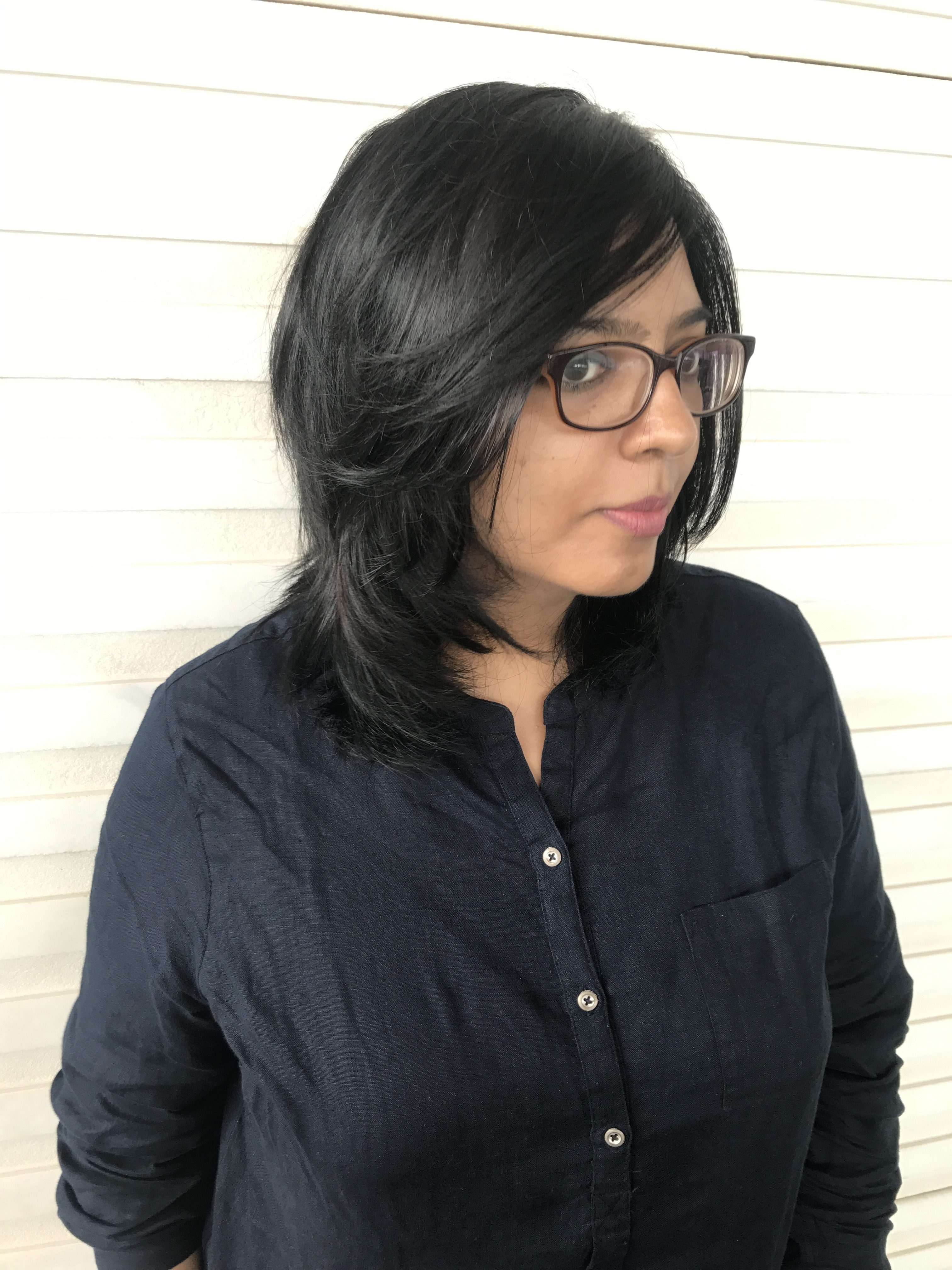 Now, doesn’t that look like a fun event? For years, my hair has been coloured Burgundy or Black with Red tones. With my natural dark brown, the effect has been kind of copper, especially when light hits it. When the BBlunt team recommended going Blue-Black I had concerns about the Blue! But they were very reassuring that the blue is just a hint of blue shimmer visible only when the hair catches natural light. That, is how I ended up with a totally different hair look. You can see in the slightest shimmer where the light hits. It is extremely subtle and I was told will be more prominent with subsequent colouring.